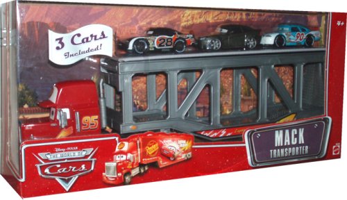 - Disney Pixar The World of Cars Playset - Mack Transporter with Bonus of 3 Pack 1:64 Scale Die Cast Car (# 28 Nitroade, Bob Cutlass and #90 Bumper Safe)